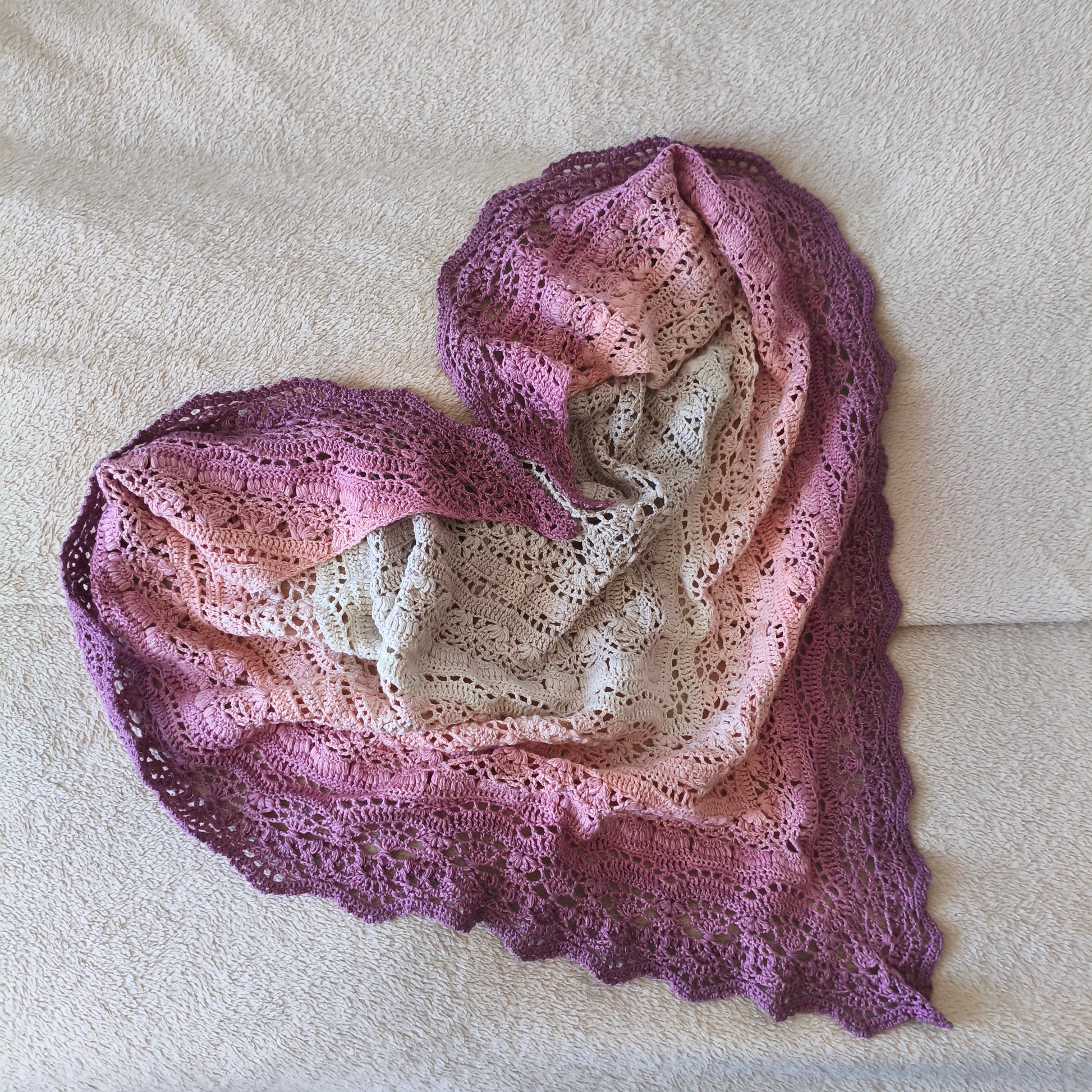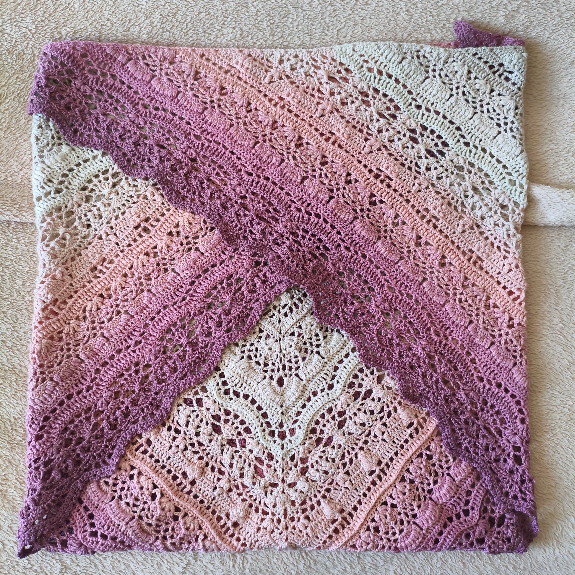 Wiosenna - letnia, a nawet zimowa, ażurowa, duża chusta, wykonana ręcznie na szydełku. Miękka i delikatna. Doskonała nawet dla najbardziej wymagającej skóry.