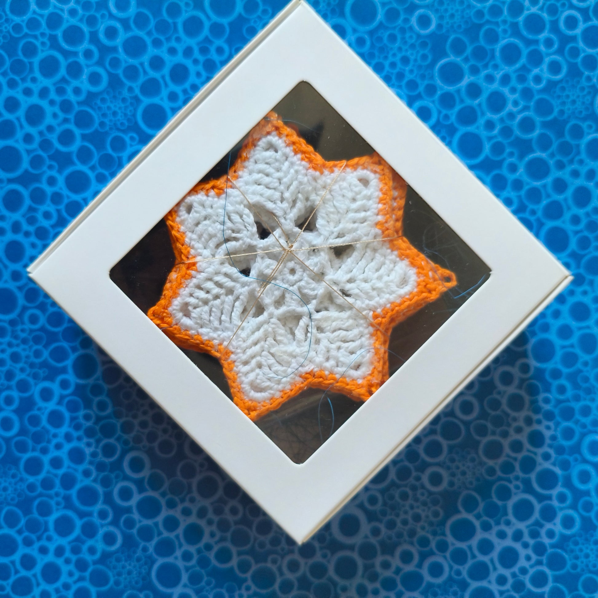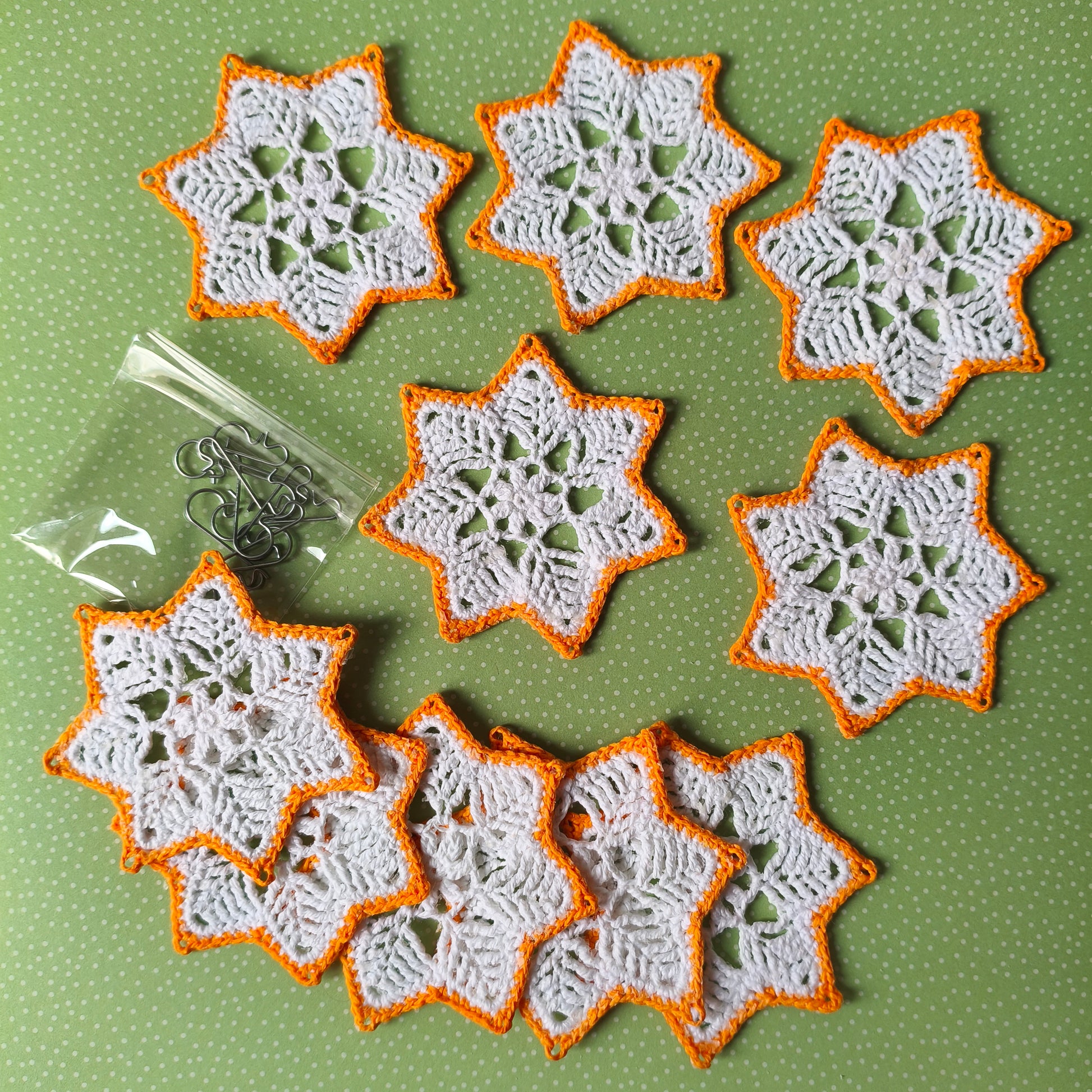 Gwiazdki Szydełkowe biało-pomarańczowe